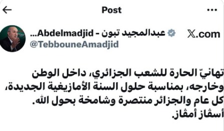 رئيس الجمهورية السيد عبد المجيد تبون يهنئ على حسابه الخاص