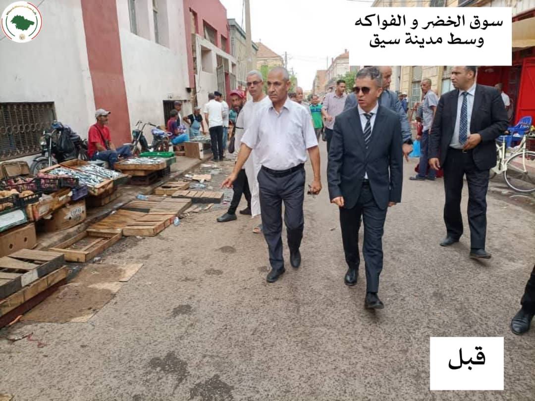 وقد شدد السيد الوالي على ضرورة القضاء على كافة أشكال التجارة الفوضوية التي تشوّه المشهد الحضري وتعرقل حركة السير، مع استرجاع الفضاءات العمومية وإعادة الاعتبار لها. كما أسدى تعليماته بإعادة تنظيم سوق الخضر و الفواكه بسيق في إطار قانوني ومنظم يراعي المعايير المعمول بها.