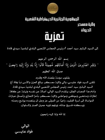 ترأس السيد عايسي_فؤاد والي ولاية معسكر، مساء الأحد 01 فيفري 2026، جلسة عمل خصصت للوقوف على مدى تقدم مشاريع قطاع الأشغال العمومية عبر مختلف بلديات الولاية، مع التركيز على الشطر المتبقي من الطريق المنفذ للطريق السيار شرق–غرب، باعتباره أحد المشاريع الهيكلية ذات الأهمية الاستراتيجية في دعم الربط الطرقي وتحسين حركية التنقل وفك العزلة عن المناطق الداخلية.