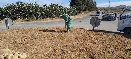 غرس النباتات التزيينية بمحور الدوران بشارع الصومام ومحور الدوران باتجاه بلدية ماوسة.