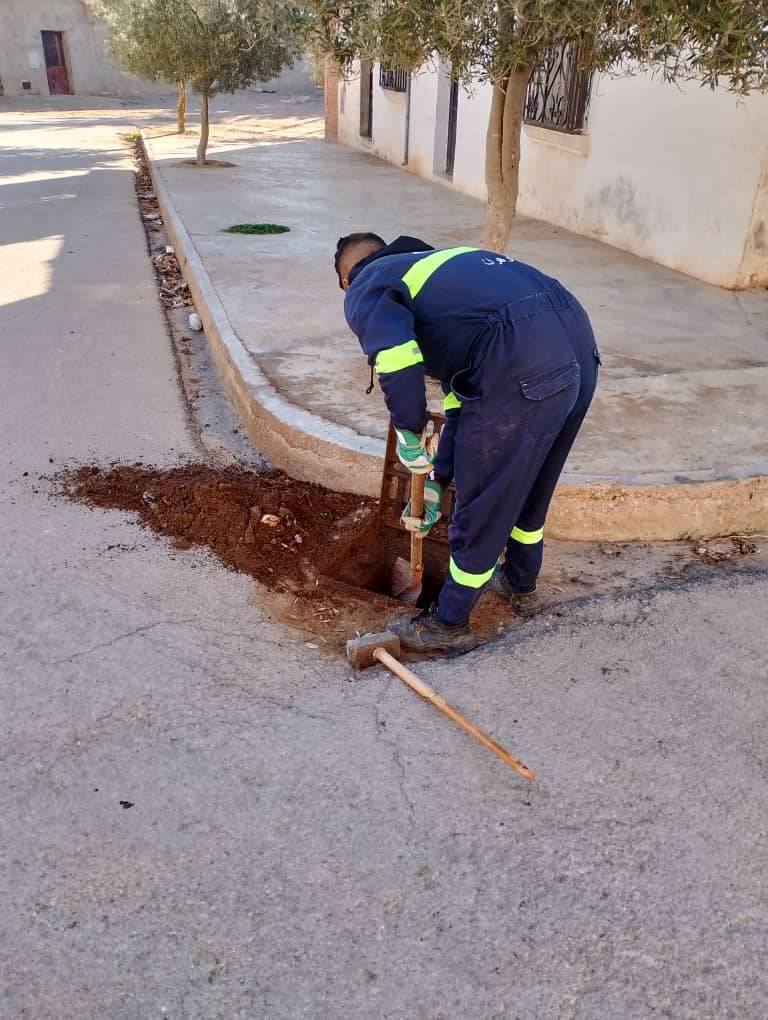 أشغال وضع بالوعات بالقرب من مدرسة العربي تبسي.