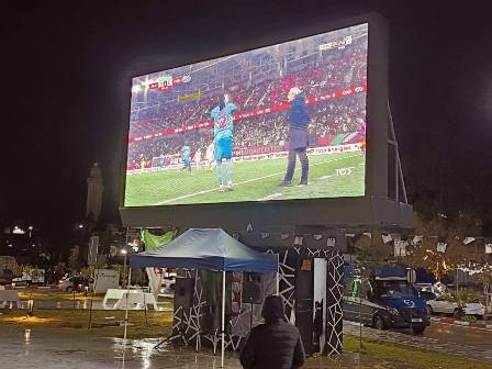 رغم برودة الطقس وتساقط أمطار الخير على ولاية معسكر، يتوافد في هذه الأثناء عدد معتبر من المواطنين إلى ساحة العيش بسلام، لمتابعة مجريات مباراة المنتخب الوطني الجزائري أمام نظيره الكونغو الديمقراطية، ضمن منافسات كأس إفريقيا للأمم، وذلك عبر الشاشة العملاقة