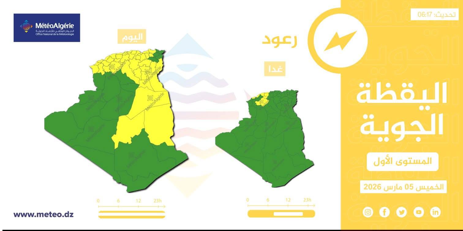 -صلاحية النشرية: يوم غد الخميس 05 مارس 2026 بداية من الساعة 03:00 سا وتستمر إلى غاية يوم الجمعة 06 مارس 2026 غلى الساعة 03:00 سا على الأقل