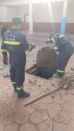 تسريح انسداد بقنوات الصرف الصحي بمدرسة رابح بوزيدي.