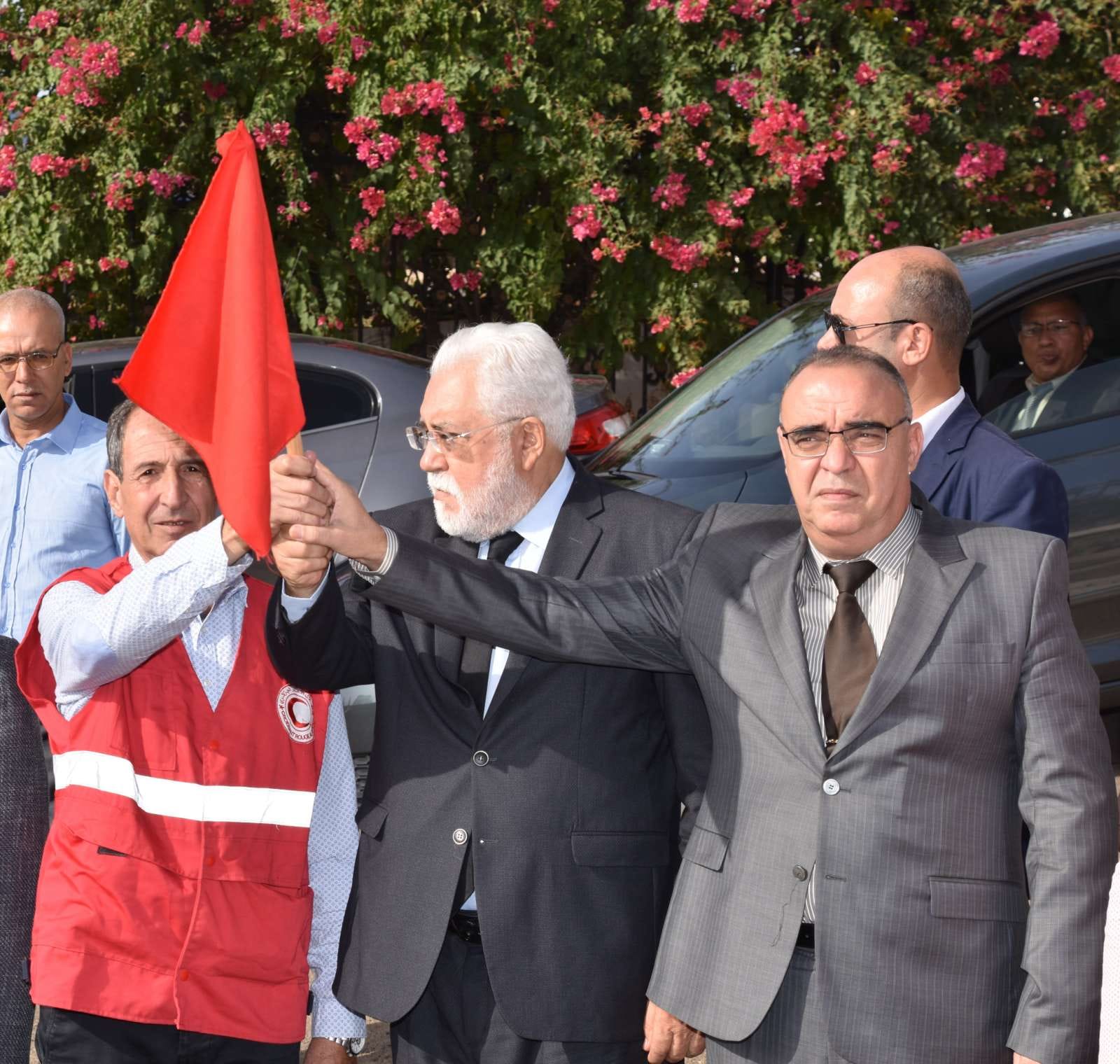 إعطاء إشارة إنطلاق قافلة تضامنية محملة بالمواد الغذائية و الاغطية و الافرشة و هذا بحضور السادة رئيس المجلس الشعبي الولائي، الامين العام للولاية، رئيس