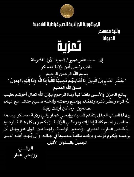 بهذه المناسبة المباركة مديرية الحماية المدنية لولاية معسكر بكافة مستخدميها تهنىء الشعب الجزائري خاصة والأمة والإسلامية كافة بحلول هذا اليوم المبارك وتتمنى