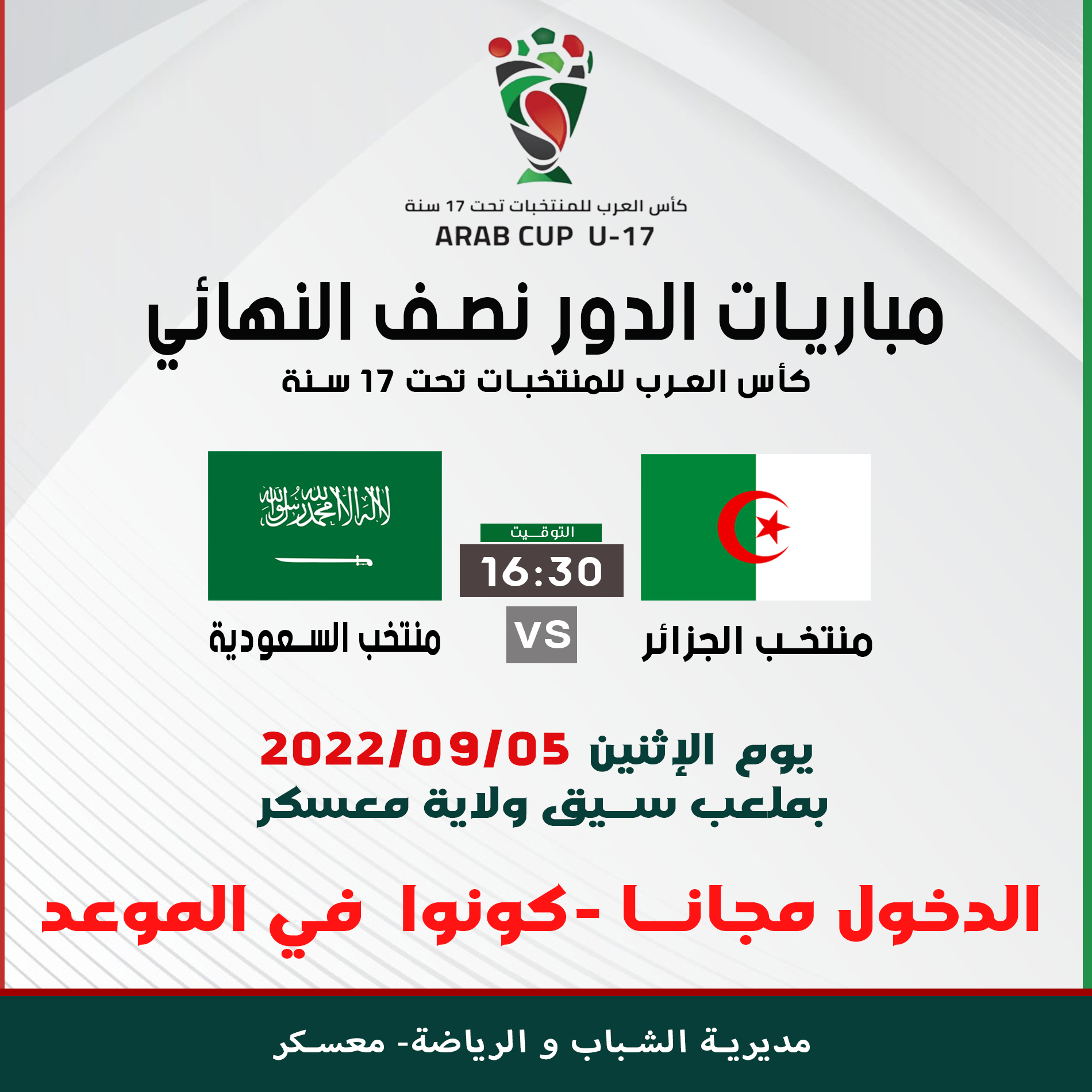 منتخب الجزائر - منتخب السعودية يوم الإثنين 2022/09/05 بملعب سيق ولاية معسكر