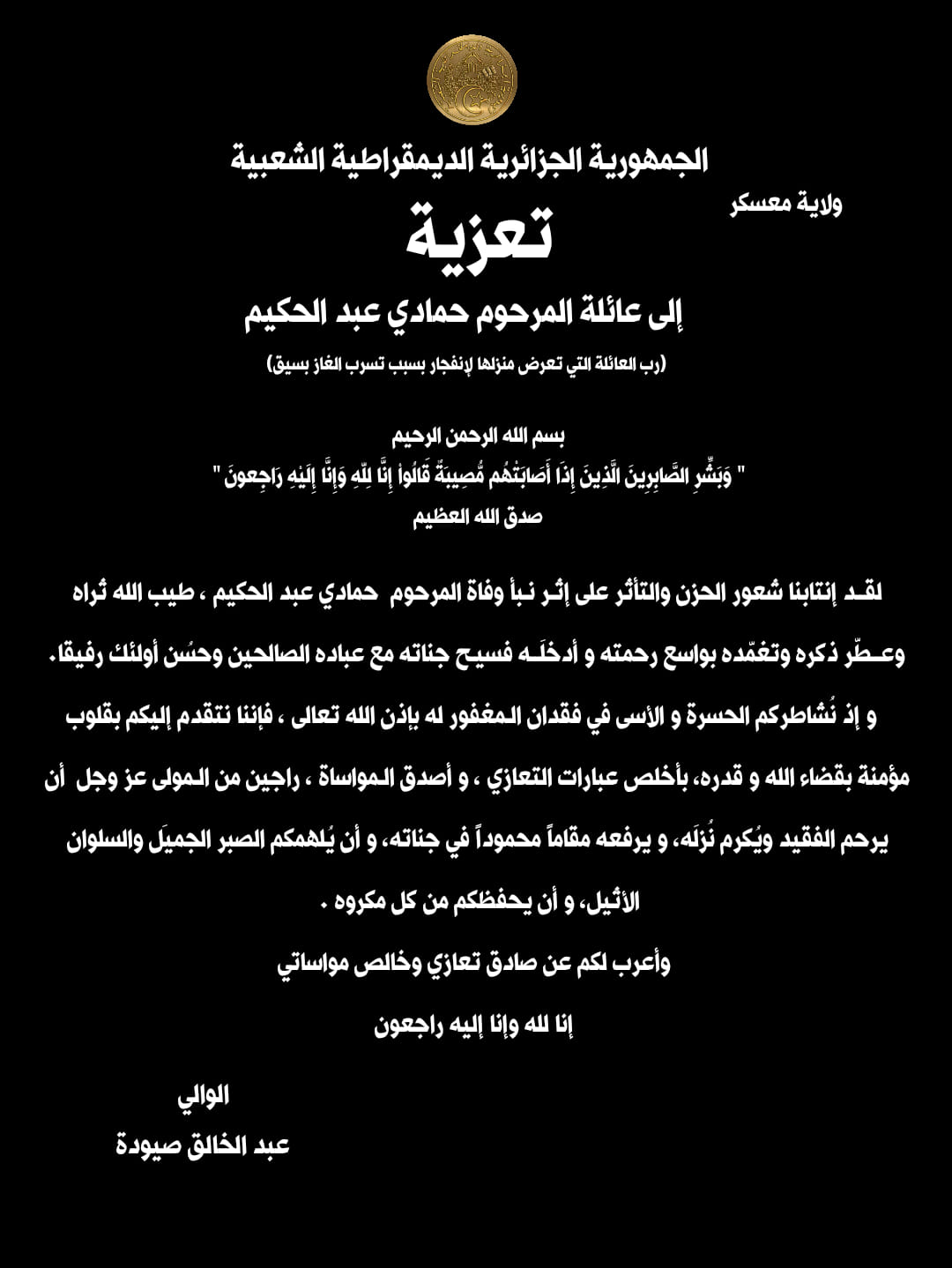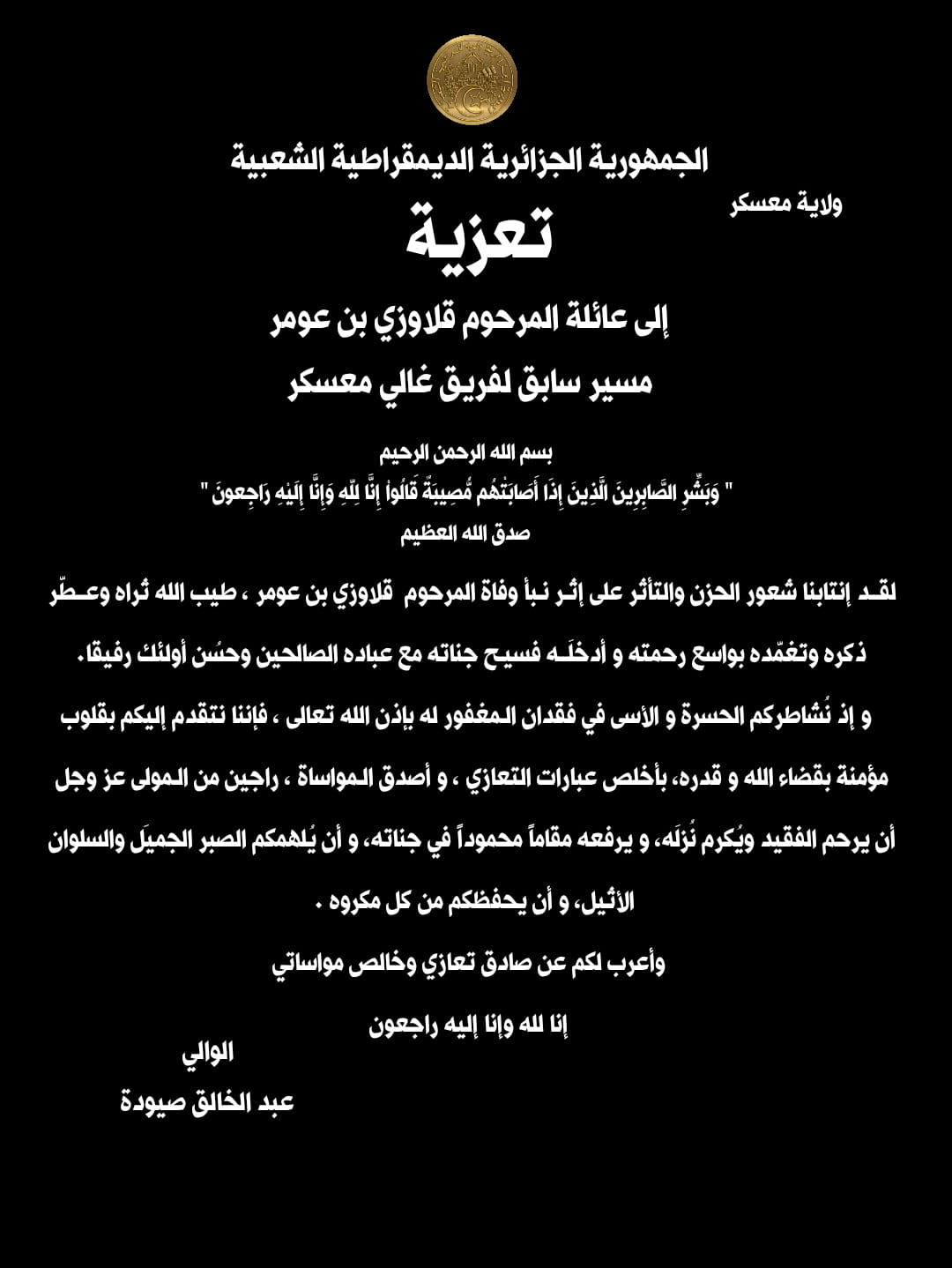 تعلم المديرية العملياتية لاتصالات الجزائر بمعسكر، سكان حي 186 سكن بسيدي عبد القادر بن جبار، بلدية معسكر، بإتاحة وبداية تسويق إنترنت الألياف البصرية الموصولة لغاية المنازل FTTH ، وذلك بعد الإنتهاء من تركيب المعدات التقنية الضرورية وتوصيل شبكة الألياف البصرية لداخل العمارات السكنية.