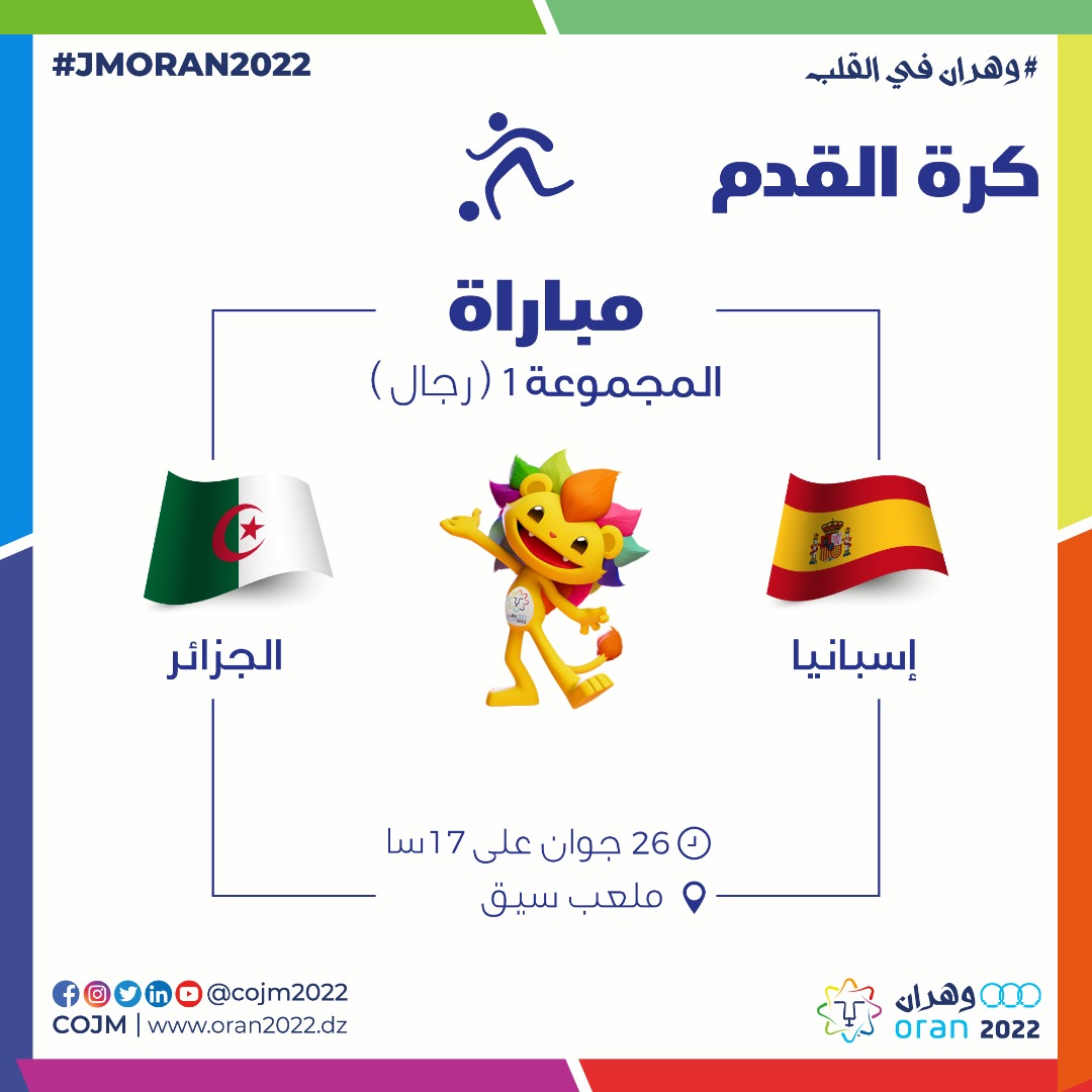 مباراة كرة القدم في إيطار بطولة ألعاب البحر الأبيض المتوسط بين الفريق الوطني و الفريق الاسباني لأقل من 18 سنة وسط حضور جماهري كبير و بحضور السادة