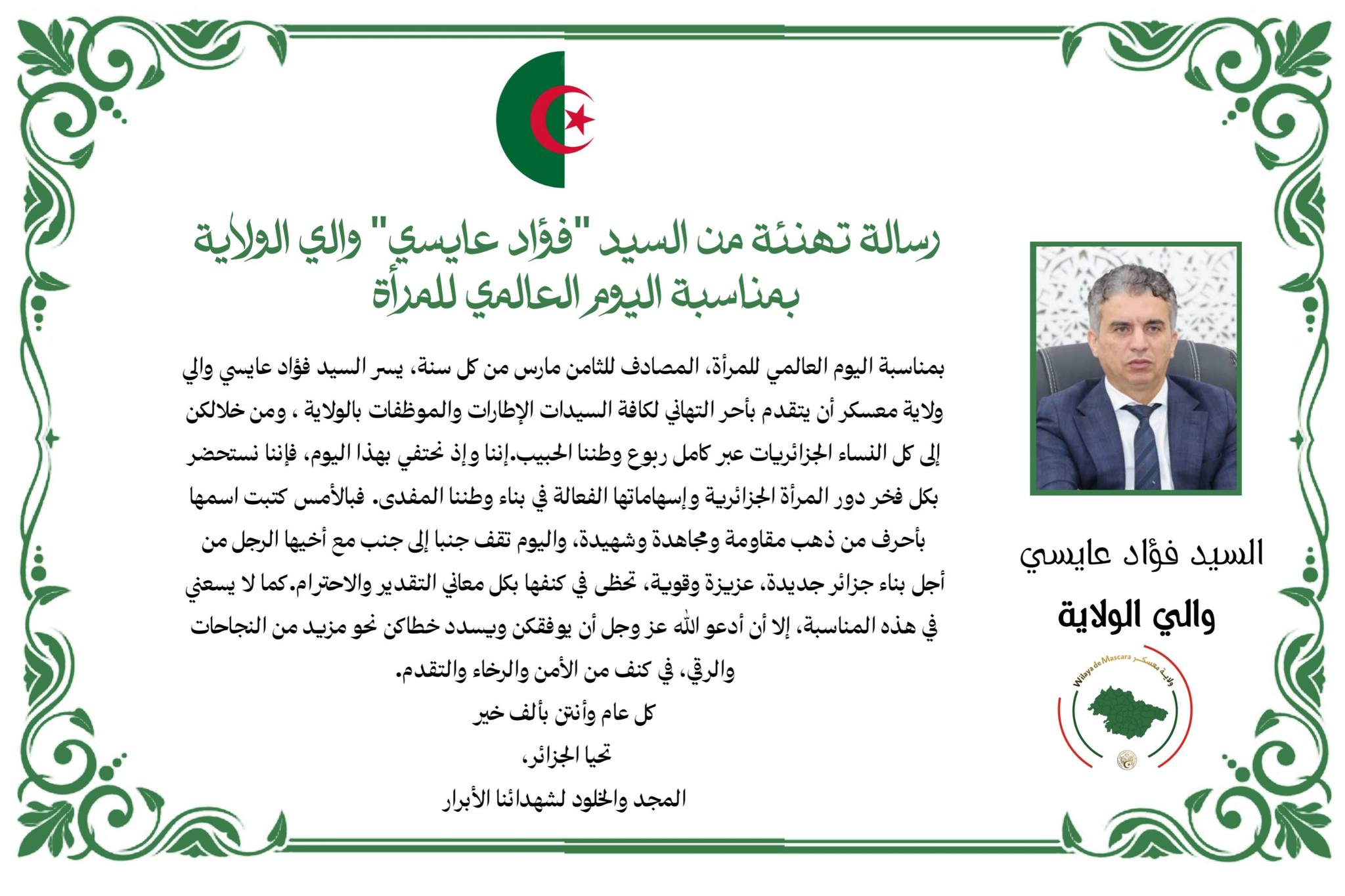 أشرف السيد فؤاد_عايسي، والي ولاية معسكر، صبيحة اليوم الإثنين 09 مارس 2026 بمقر الولاية، على جلسة استقبال خصصت للاستماع المباشر لطلبات المواطنين ودراسة مختلف انشغالاتهم.