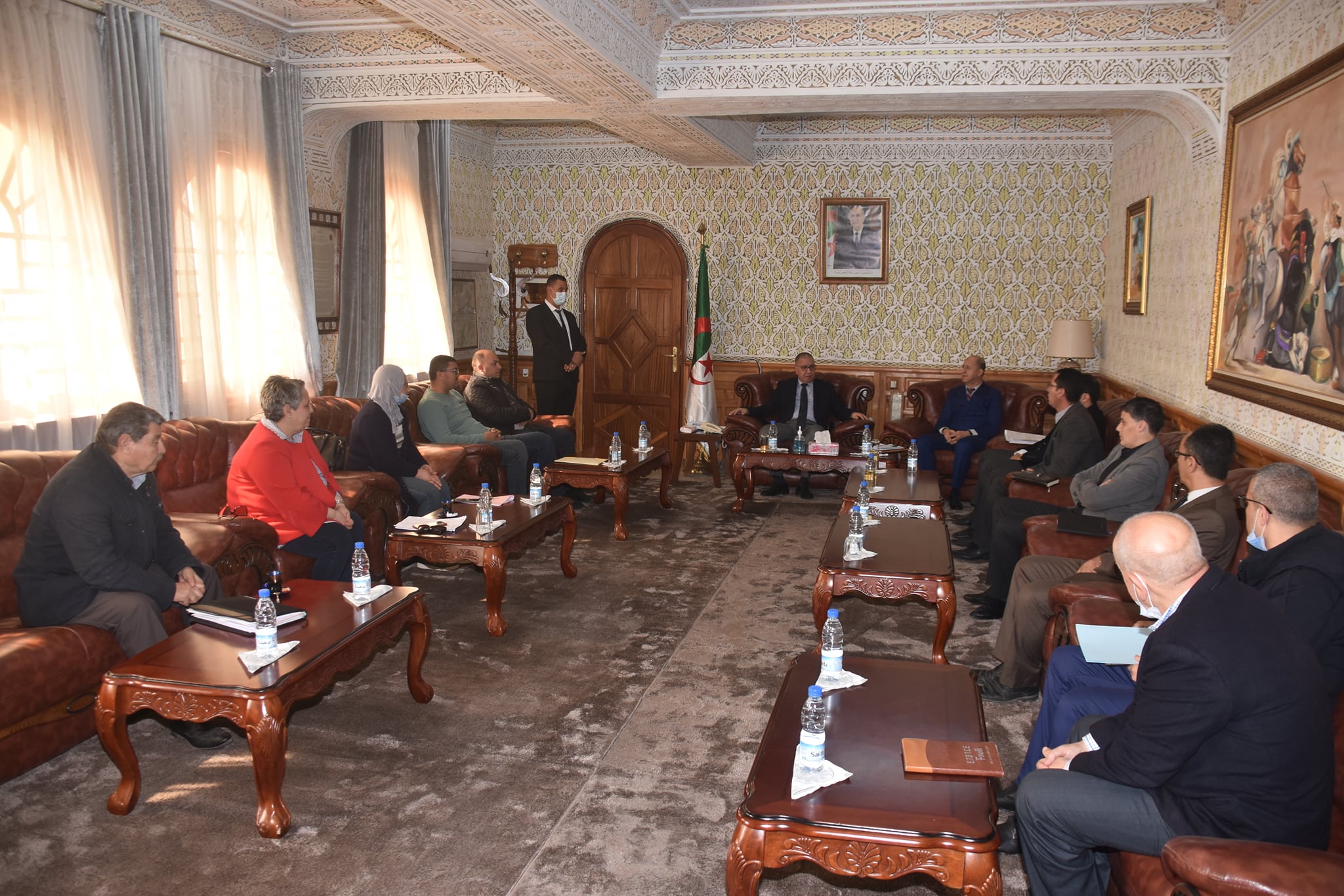 الخميس 24 مارس 2022 بمقر الولاية الديوان السيد عبد الخالق صيودة والي الولاية جلسة عمل ضمت كلا من السيدة و السادة المدير العام لمجمع الصناعات المحلية