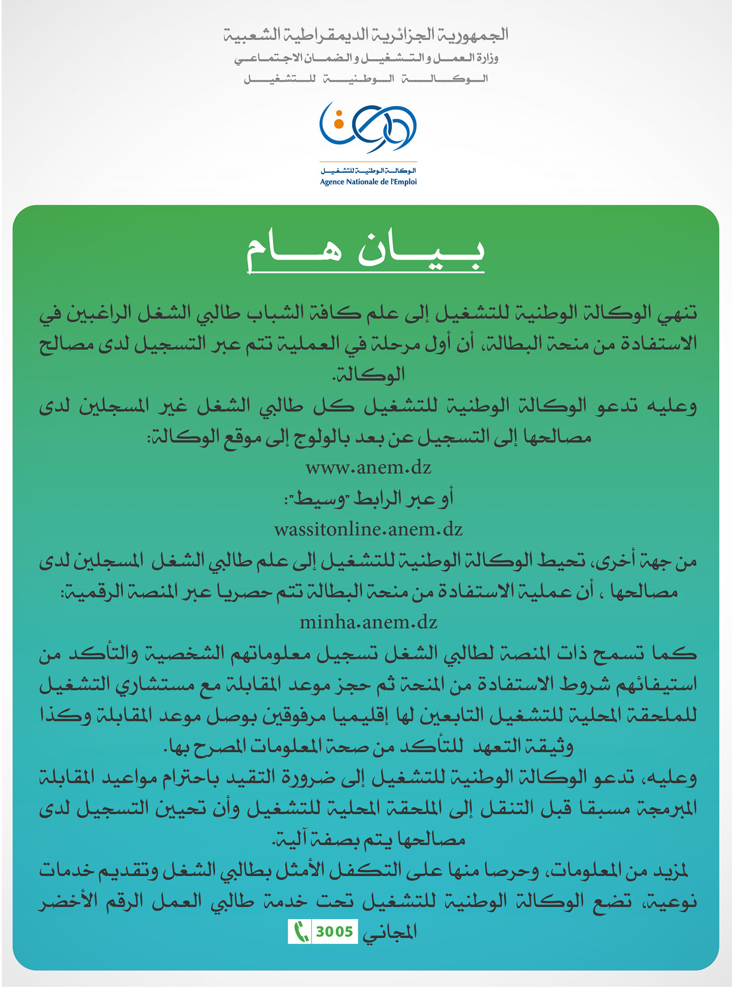 التسجيل عن بعد لطالبي الشغل.
