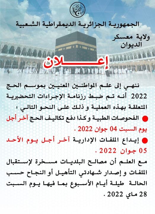 الثالث : التحضيرات الجارية لإنجاح موسم الحج لسنة 2022 و ذلك بتسخير كافة الإمكانيات لإنجاحه لا سيما بعد تحدد آخر آجال للفحوصات الطبية و إيداع الملفات