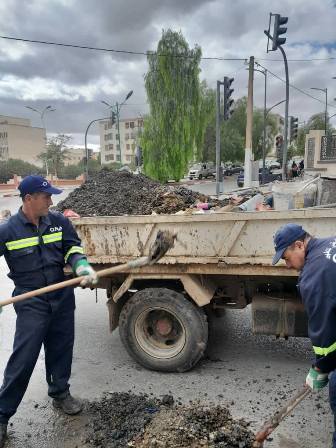 تنظيف وكنس الطرق الرئيسية ورفع النفايات والمخلفات بمختلف الأحياء.