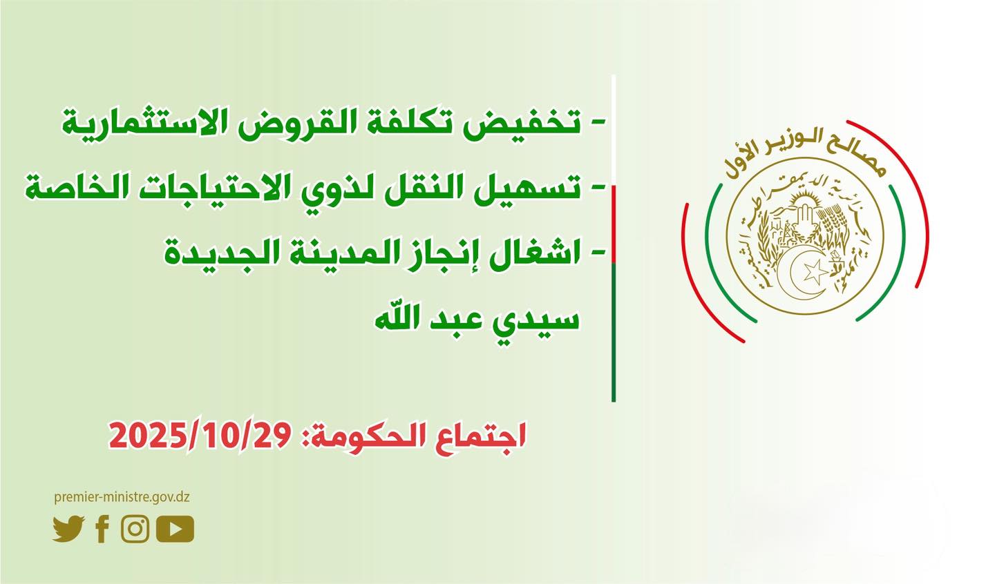 ترأس الوزير الأول، السيد سيفي غريب، هذا الأربعاء 29 أكتوبر 2025، اجتماعًا للحكومة خصص لدراسة النقاط الآتية: