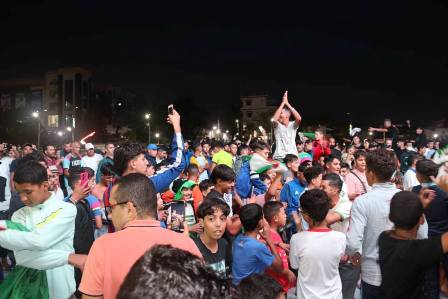 الشباب وعموم المواطنين خرجوا إلى الساحات والشوارع تعبيرًا عن فرحتهم العارمة، ملوّحين بالأعلام الوطنية ومردّدين الأهازيج والأغاني التشجيعية في أجواء مميزة طبعتها الروح الوطنية العالية والانضباط والتنظيم.