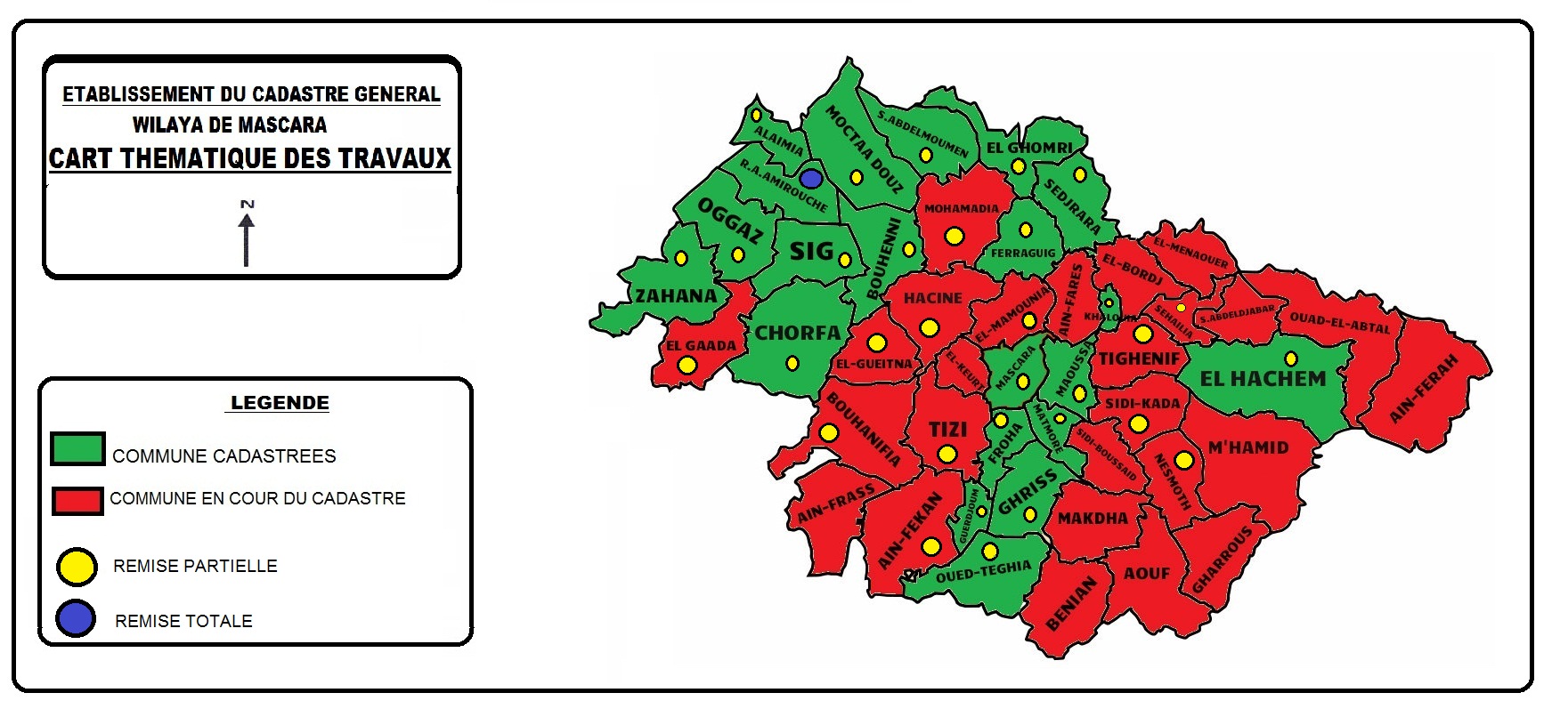 MASCARA GHRISS SIG KHALOUIA MATEMORE MAOUSSA SIDI ABDELMOUMEN OGGAZ ALAIMIA BOUHENNI R . A . AMIROUCHE MOCTAA DOUZ GUERDJOUM OUED TARIA FROHA GHOMRI SEDJRARA FRAGUIG ZAHANA CHORFA HACHEM |